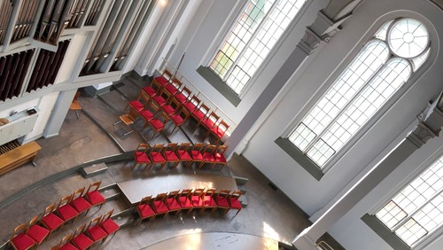 30 Minuten Orgelmusik mit geistlichem Impuls in einer der größten Kirchen Berlins mit einer Ausstellung über die Teilung Berlins und die Geschichte der Kirche am Mauerstreifen.
